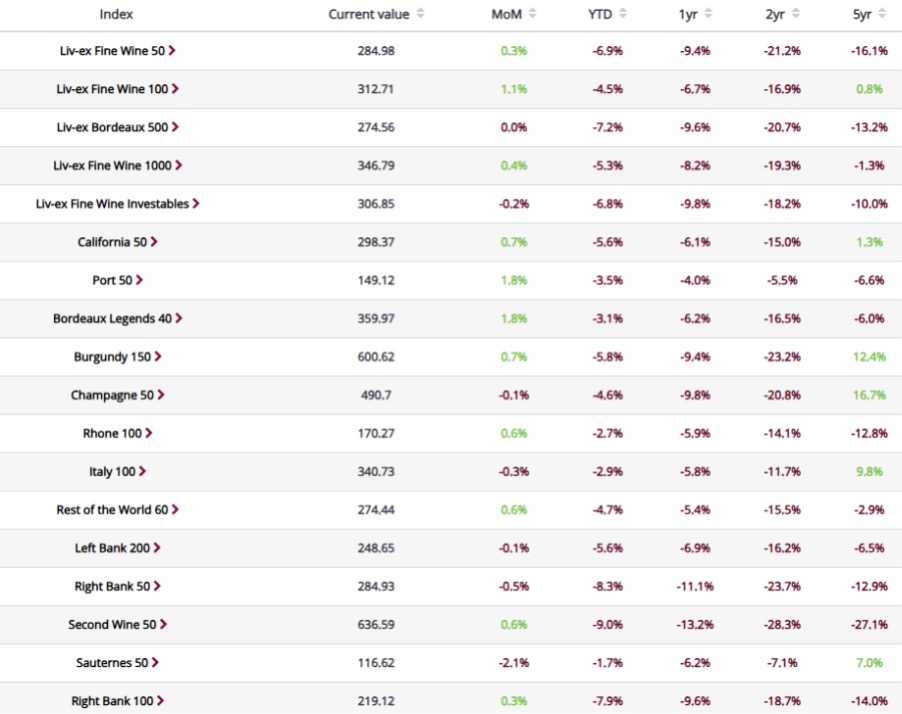 However, many highly traded wines remain near their 2020 lows, suggesting the region may not have fully bottomed.
